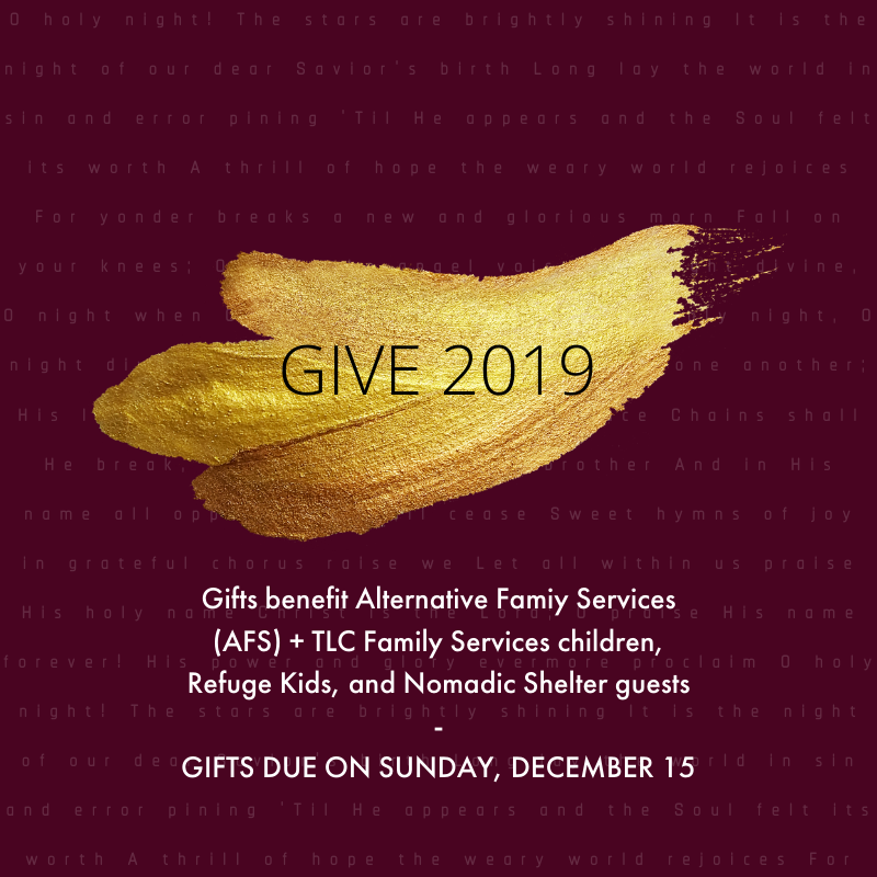 To participate, grab a tag from the GIVE board at Refuge and bring your item(s) + corresponding tag(s) back to Refuge by Sunday, December 15. Please do not wrap your gift(s).We have extended the deadline for anyone who selected a gift for Nomadic Shelter or Refuge Kids. Please bring your gifts back by Sunday, 12/29.